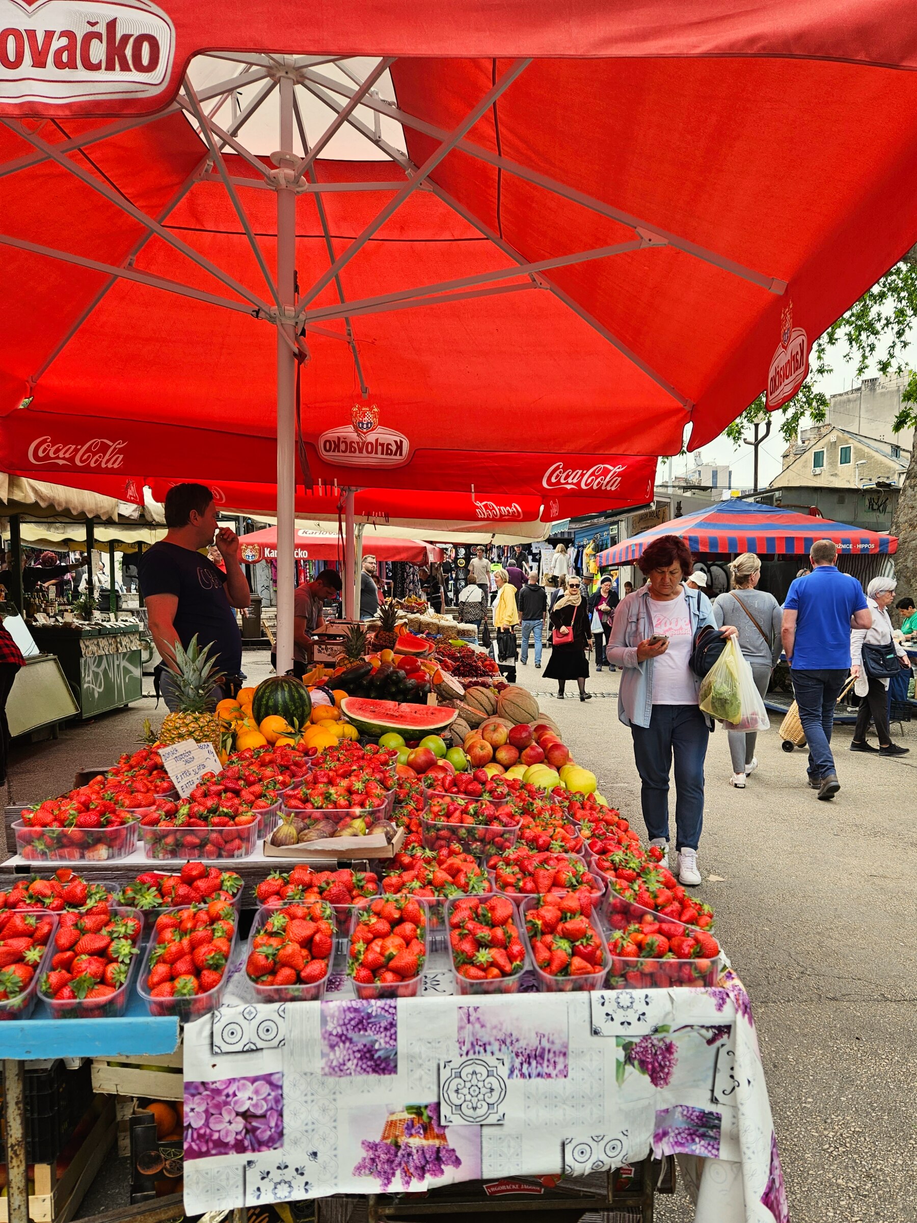 As we headed towards Split’s city center, we stumbled upon the “green market.” This vibrant outdoor market is a great way to immerse yourself in local life.
